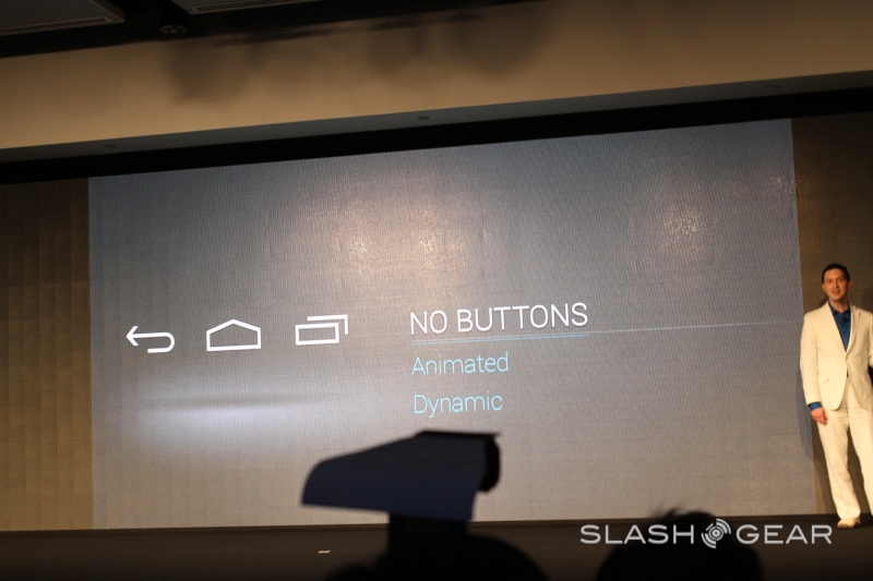 You'll notice a new look to the entire system compared to past iterations, but not more than on the home set of screens. There's both an applications tray for all of your applications and a favorites tray made mostly for smaller displays that benefit the most from having a small selection of apps instantly. Instead of there being physical Android menu buttons on your hardware, there are now three buttons inside the regular display space: back, home, and recent apps.