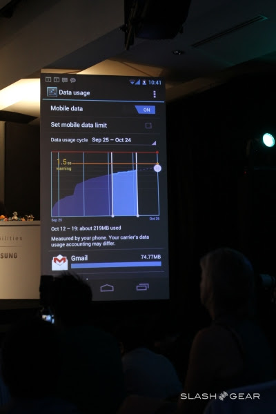 Inside your Settings there's now a Data Usage function which allows the user to show total data use on each kind of network, mobile or Wi-fi, plus the amount of data being used by each running application. Users are able to set warning levels on their data usage, disable mobile data altogether, and control apps individually for data.