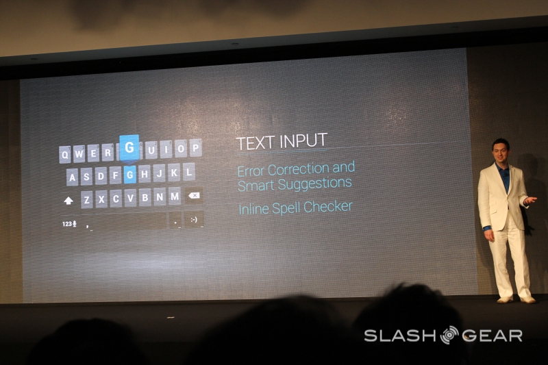 There's a new soft keyboard in Android 4.0 that looks rather similar to what the Gingerbread keyboard looked like, the improvements mostly sitting on the inside. Spell-checking has been improved through an updated default dictionary, more accurate heuristics for items such as spaces, missed letters, and double-typed letters. Word correction suggestions have been simplified to only show three possible word alternatives as well. Spell-checker locates and underlines errors now and each word can be updated with a single tap on that word.