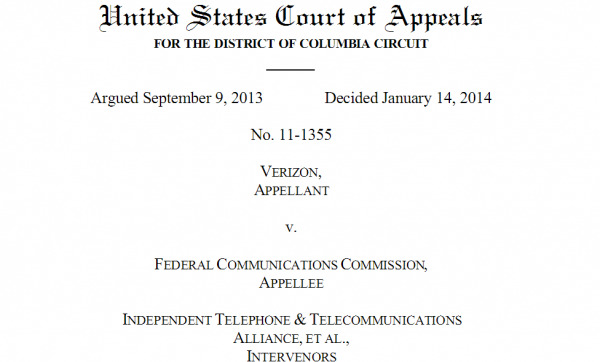 Above you're seeing just a bit of the full 80+ page document handed down this week in the face of the FCC by this court. This is no small ruling, and is likely to be taken to a higher court, then a higher court again if they see a similar ruling. Net Neutrality could be over right this minute, but it's far more likely the FCC will bring this one up all the way to the top.