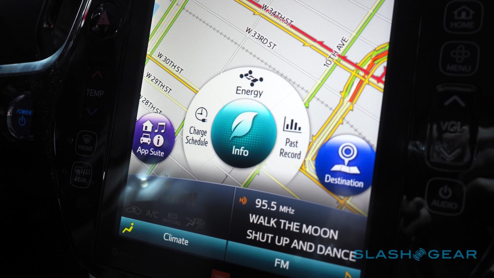 ChargePoint's map of plug-in stations is built into the navigation system, too, and there's a smartphone app from which you can check power status as well as remotely turn on the air conditioning. You also get a fair amount of lag, though Toyota tells us that it's not done with the software yet.