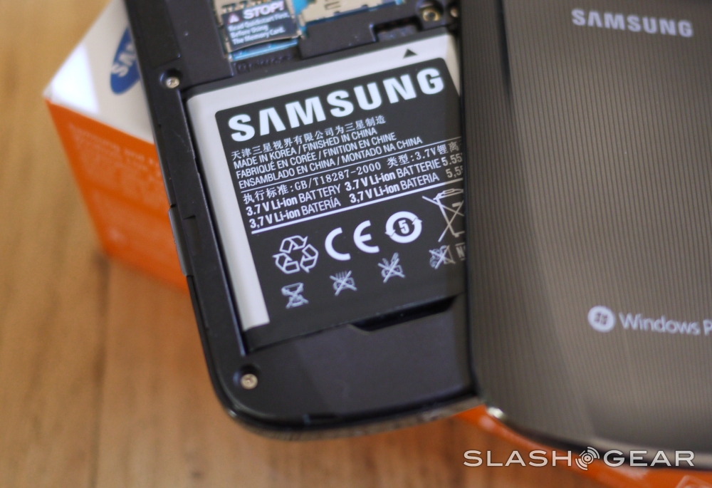 As you'll see in the video, this device feels extremely light and thin, certainly compared to the rest of the Windows Phone 7 devices we've seen released to the market thus far. You've got a 1500 mAh battery under the hood so you'll more than likely get a full day's use out of your smartphone before you need to recharge, and your internal memory at 8GB and external memory at 16GB will keep you ready to hold your media galore as downloaded from the Windows Phone Market and Zune for all the rest.