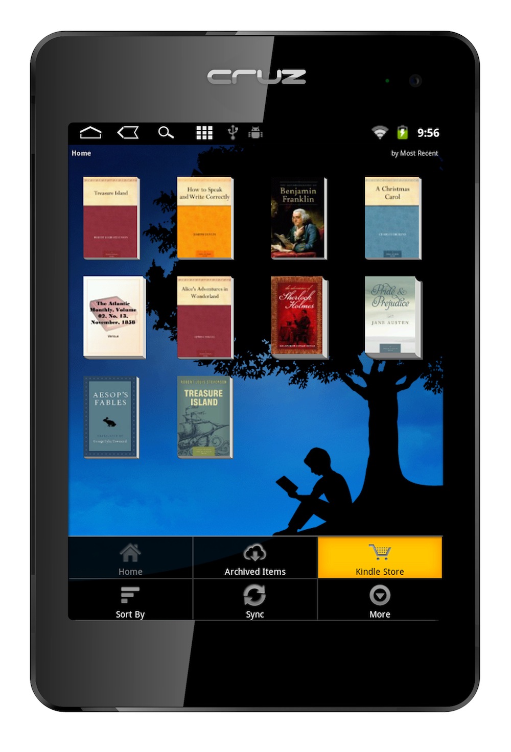 Biggest is the OS: both these Android slates run 2.3 Gingerbread, not Honeycomb (though judging by the screenshots, VM has dressed them up with some Honeycomb-style UI customizations), which means they're not eligible for the Android Market. Instead, Velocity Micro preloads the Amazon Appstore for Android on there, along with the Kindle app, Angry Birds Rio and QuickOffice. These run on a single-core 1GHz Cortex A8 processor, paired with 512MB of RAM and 4GB of onboard storage.