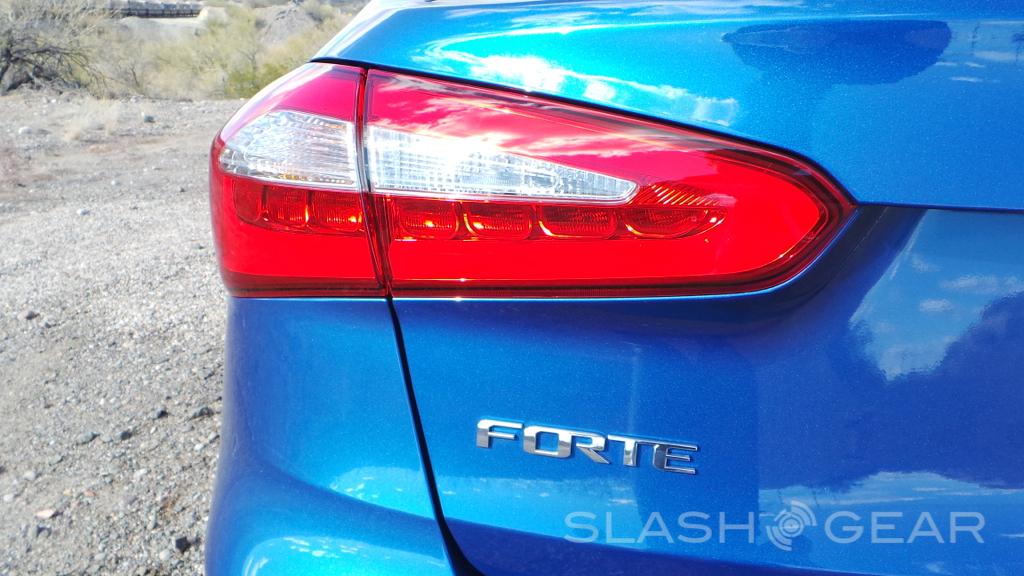 At first glance you'll quickly notice the elegant lines, smooth corners, and edgy LED infused headlights and taillights. Using a wrap-around design to keep the front clean and simple (not to mention aerodynamic) you can quickly see all the effort the California design crew put into the 2014 Forte. Offering an all-new chassis that is lower, wider and longer than the previous generation, driving and handling certainly was improved and stiff — in a good way. Electric power steering replaces hydraulics, but that's where their new FlexSteer technology comes into play. Quickly tap the FlexSteer option located right on the steering wheel and you'll be able to drive casually, or grip and rip the road and curves. Using Electronic power steering the weight will instantly change and driving styles are Normal, Casual, and Sport. We preferred the Normal setting to be honest, but can see the appeal.