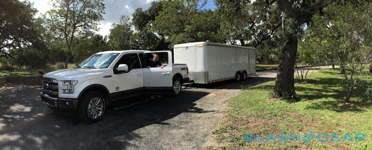 In fact, if anything it proved all too easy to forget that there was something hanging off the back of the F-150, so thankfully there's active braking with a manual backup control just down from the steering wheel. The reversing camera also shows a dynamic line to show where the trailer will end up, too, bypassing the need for a spotter outside.
