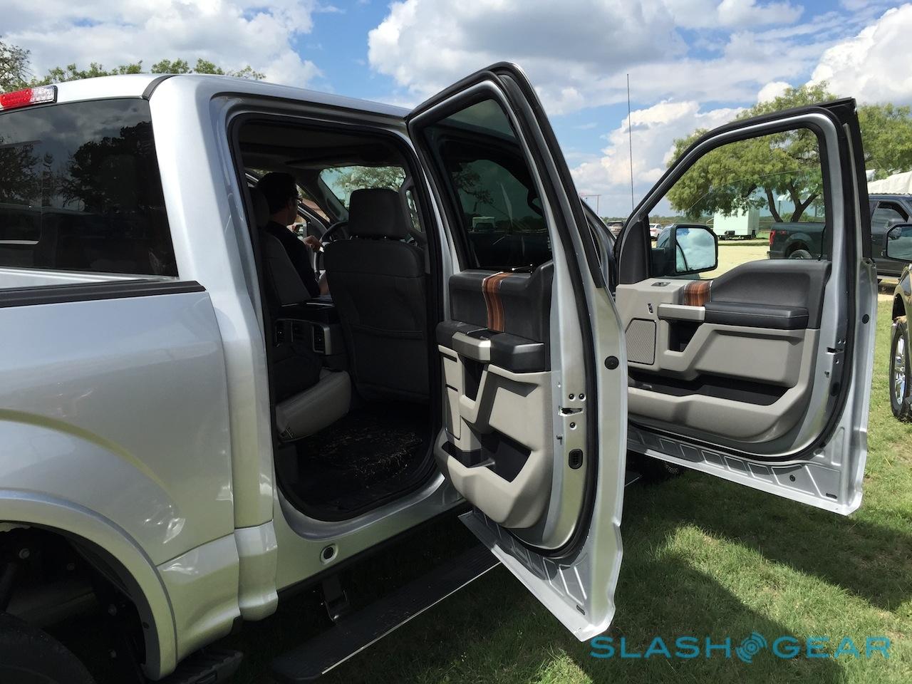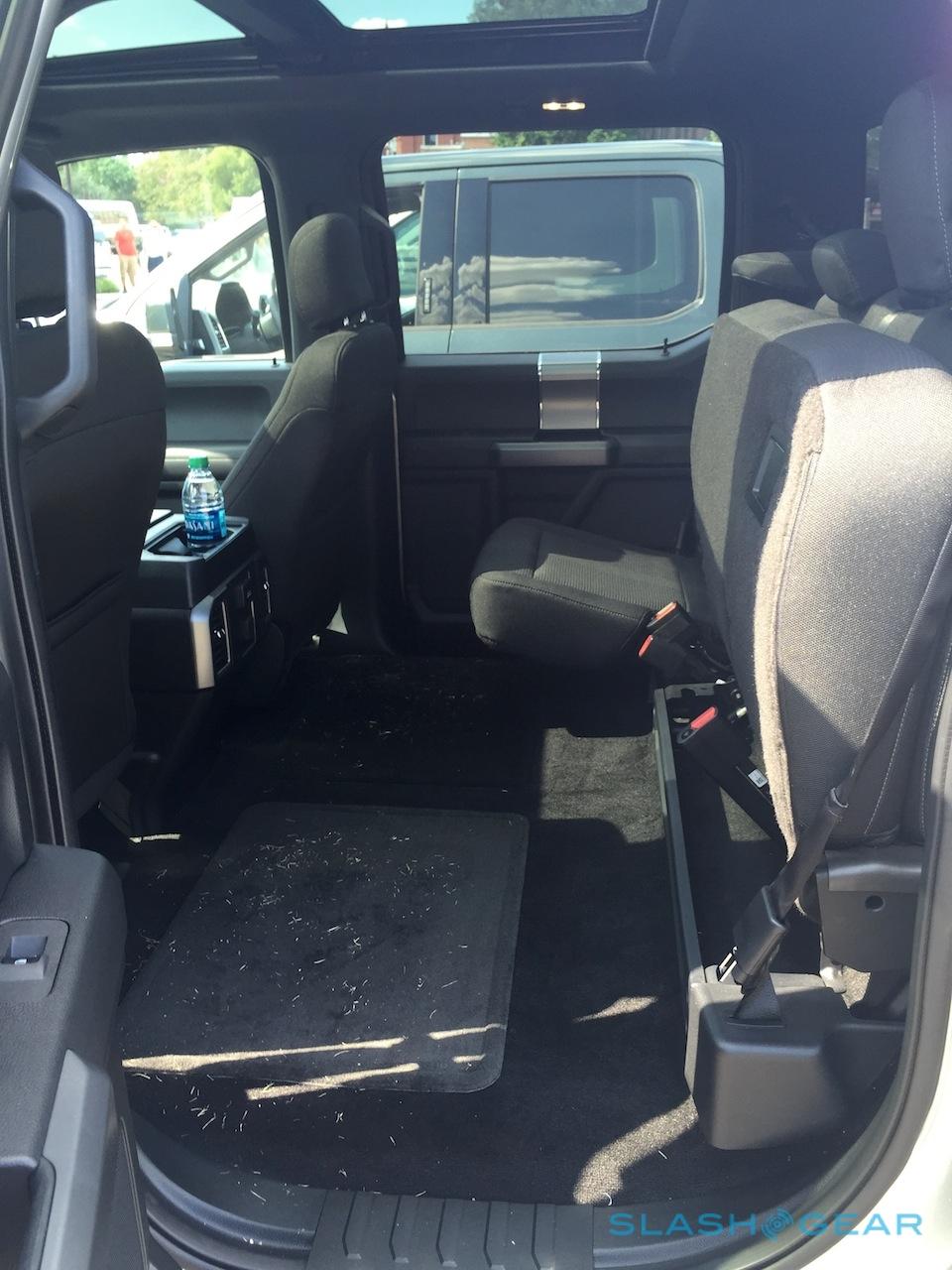 SuperCab and SuperCrew versions get a choice of five or six seat options, with the latter having a 40/20/40 split up front. A capacious storage console takes its place in the five-seater; either way, the front seats are supportive and comfortable, particularly when you add optional heating/cooling. In the back, meanwhile, the rear seats fold up with surprising ease and leave a huge, flat-bottomed swathe of space for luggage. It's particularly easy to fill with the 170-degree backward-opening suicide doors of the SuperCab, B-pillar free so as to leave the whole side of the F-150 open.
