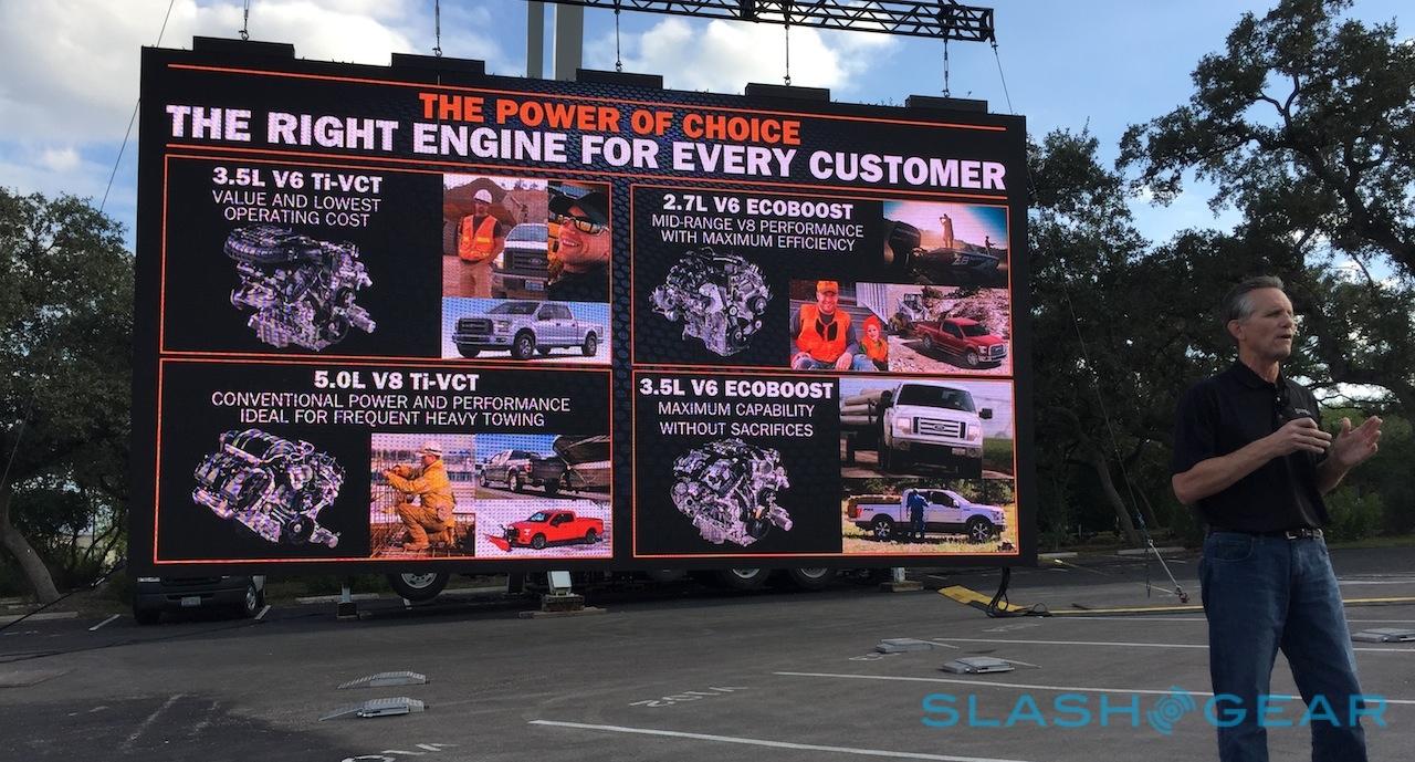 In fact, Ford is preemptively crediting the 2.7L EcoBoost as keeping drivers in full-sized trucks, no longer looking to step down in size in order to achieve better fuel-economy. Like all four of the engines, exactly what that economy benefit might be is unclear at this stage: final EPA figures aren't expected to land until November, though Ford is suggesting anything from 5- to 20-percent improvement over the outgoing model, and depending on configuration.