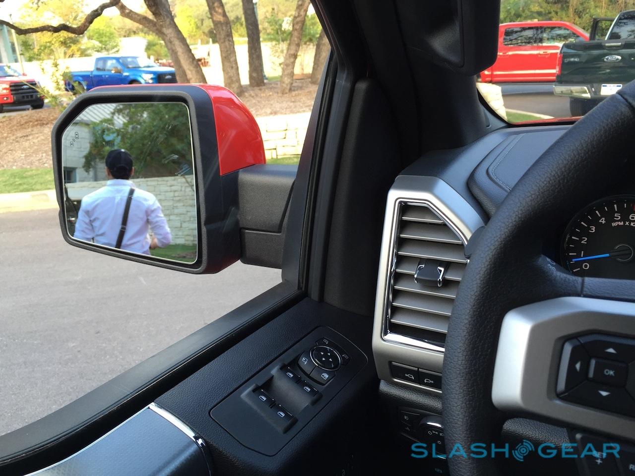 Whichever cab you choose, inside it's 2-inches wider than before, with more hip and shoulder space. You sit up high, of course, and visibility is great; Ford has dropped the belt line an inch, while the drop-down notch in the front side windows is even more pronounced than in the outgoing truck.