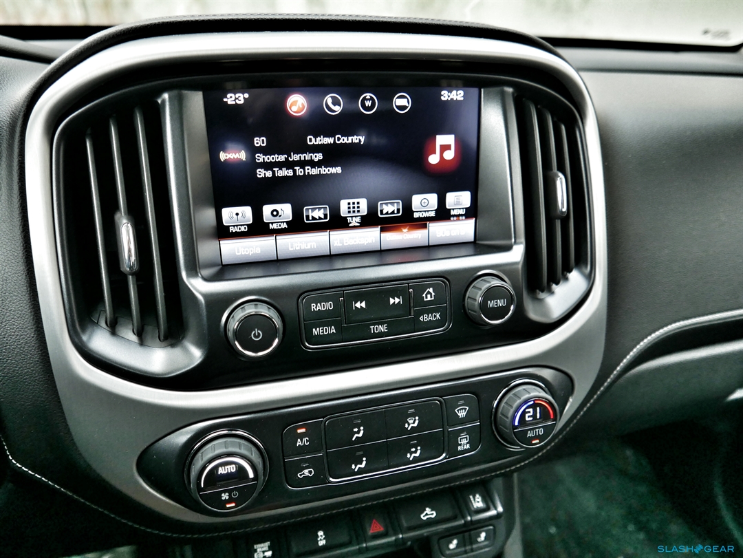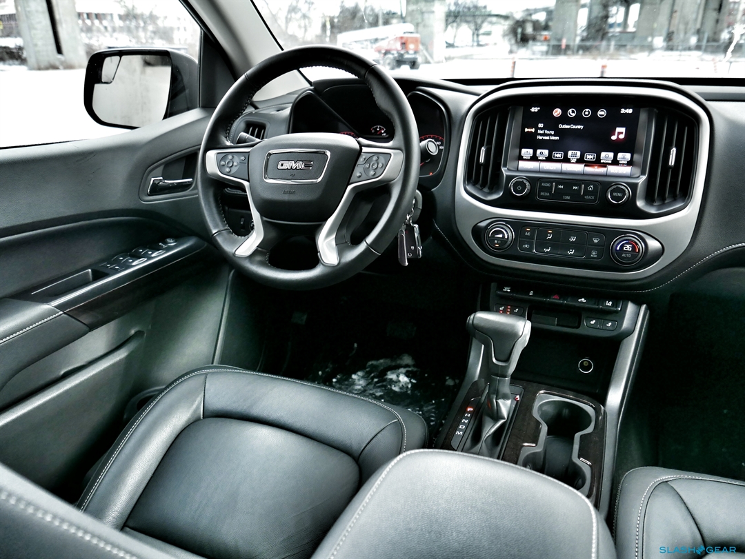 The SLT can be loaded with gear, including adaptive cruise control, forward collision warning, parking assistance, and a lane departure warning system, and the GMC IntelliLink infotainment suite is compatible with Apple CarPlay and offers a 4G LTE Wi-Fi hotspot. This level of equipment is a far cry from the stripped-down mini-trucks of old, showing that the pushed-out proportions of the new class of mid-size pickups are matched by a standard of luxury and connectivity that doesn't trail far behind their full-size counterparts.