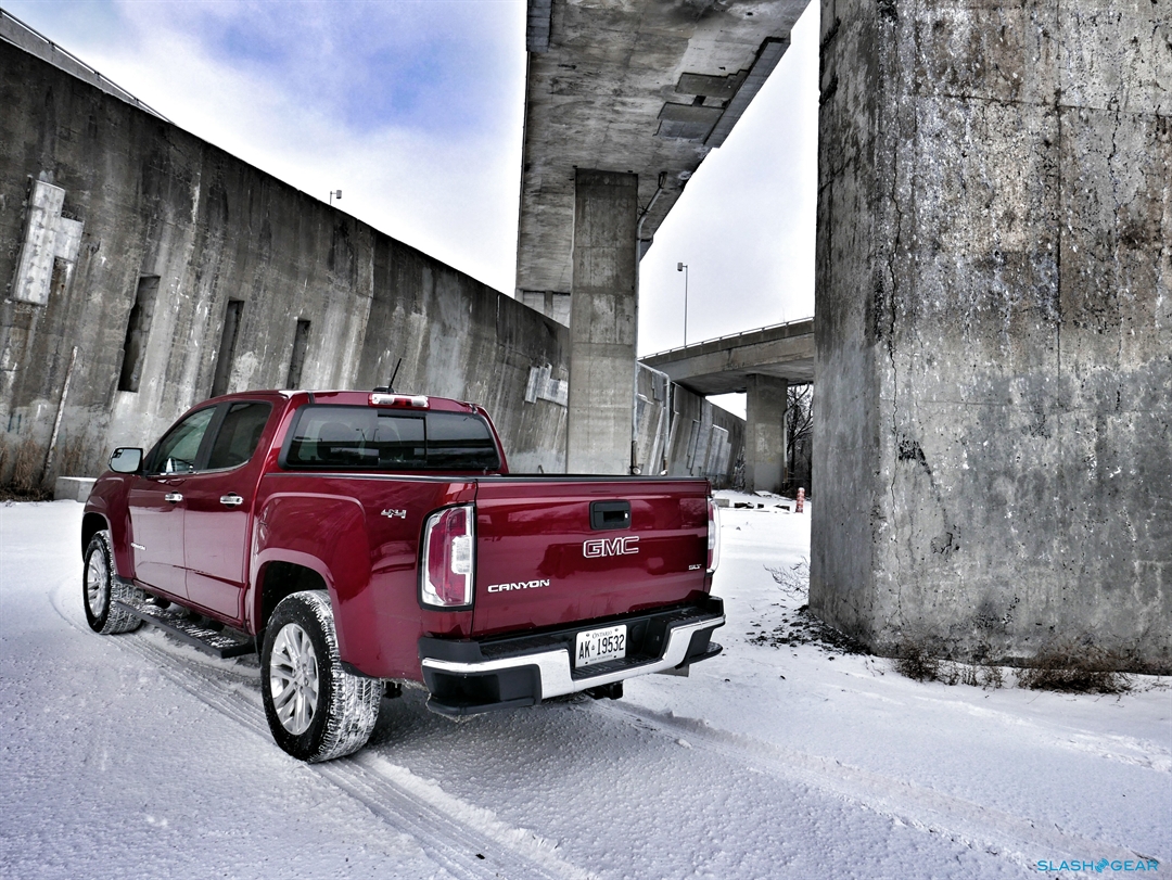 The advertised numbers are big. On the highway the Canyon Diesel returns 31-mpg, which is a full 4-mpg better than the gas-powered four-cylinder engine that's standard with the truck, and a whopping 7-mpg improvement over the most efficient version of the Toyota Tacoma, which is the segment-leader in terms of sales. Around town the difference is less starling – checking in at 22-mpg – but still better than any other pickup in its class. I saw more dismal fuel consumption during my time with the pickup, but that's due to -40 F degree weather that dominated our week together, which made for operating conditions that no internal combustion engine can be expected handle in an efficient manner.