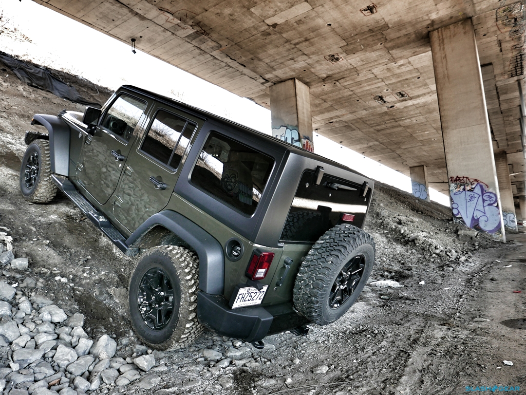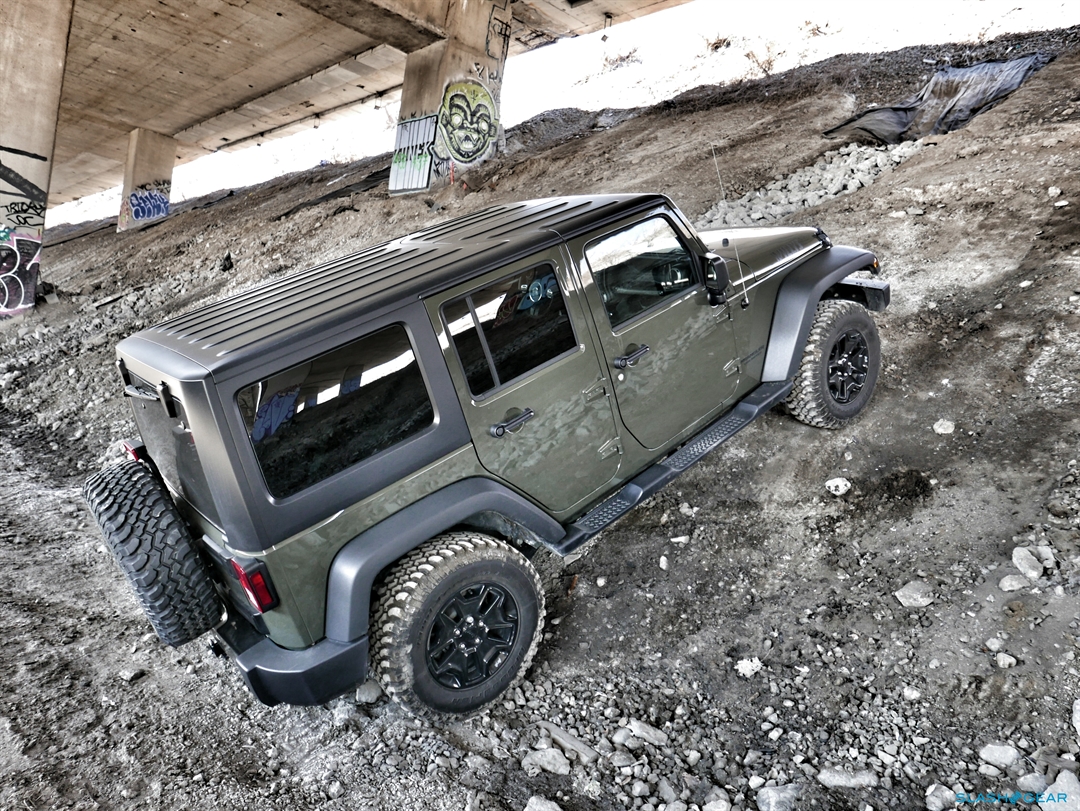 Of course, Jeep is overly aware of its legacy and the role it plays in driving dealership traffic, which is why we get 'special editions' like the Willys Wheeler I piloted for a week. Don't look for much in terms of extra equipment with the Willys – you get the entry-level Command-Trac four-wheel drive system, a locking differential as standard, rock rails, and 17-inch Rubicon wheels, but that's about it – but rather consider the genius drab olive green color scheme, the 'WILLYS' stenciled onto each side of the hood in a military-inspired font, and the option of half-doors that are a perfect fit for topless summertime cruising . It's a light-hearted throwback to the original Willys-manufactured Army-spec Jeep, or at least one that makes a few visual concessions to its ancestor and effectively turns heads out on the street.