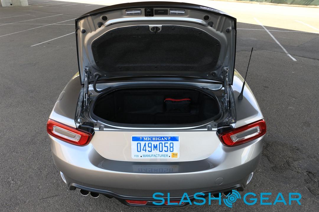 Like the Miata, the 124 Spider's size might seem like a daunting proposition to taller drivers. But my 6'3" frame settled in comfortably, though I did note that headroom is a bit tight with the top up at my height. Yet with a top mechanism that can be opened or closed with one hand and secured down in about three seconds from start to finish, any potential onset of claustrophobia can be dealt with by a flick of the wrist at a stoplight.