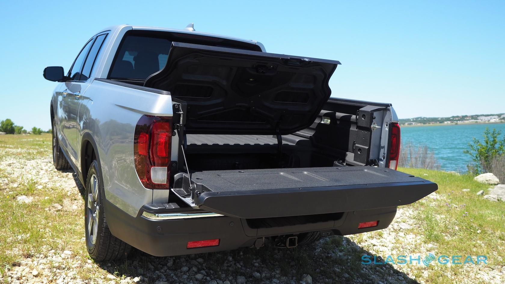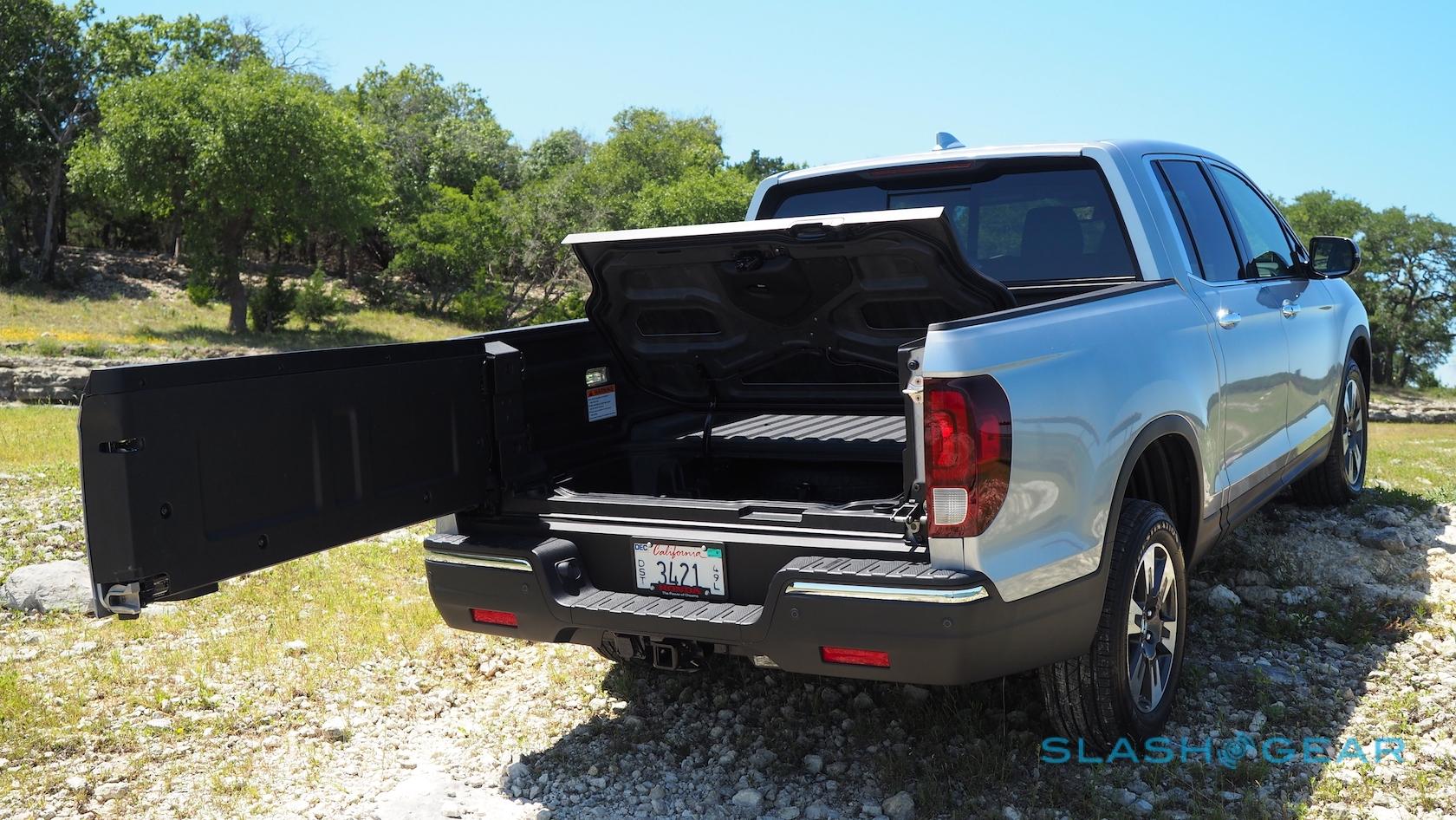 Overall towing capacity is 5,000 pounds, and it'll handle a 1,584 pound payload on the bed, too. That's for the AWD model, mind; opt for 2WD – which Honda didn't supply for me to try – and you're looking at 3,500 pounds towing instead. The bed itself is 63.3 inches long and 50 inches between the wheelhouses, with a flat floor, and Honda has switched to a new composite material which is more resilient to scratches as well as impervious to rust.
