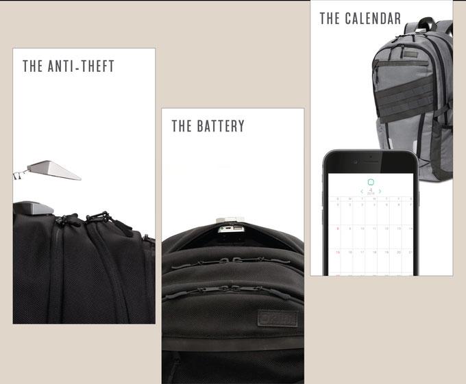 The calendar will keep track of all the things you need each day with interaction between the users smartphone and a sensor that keeps track of documents or homework. The anti-theft feature is able to secure the backpack to a chair or other stationary object to keep it safe if you leave the bag behind to make a phone call or a trip to the water cooler.