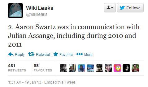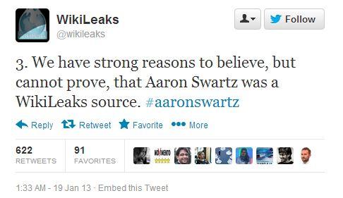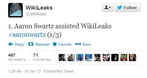 Many people have commented on the Aaron Swartz case that came to a close when the 26-year-old Internet activist committed suicide earlier this month, but now WikiLeaks has chimed in with a series of very interesting tweets. Over the weekend, the WikiLeaks Twitter account posted four tweets that detail the website's relationship with Swartz. Through these tweets, we find out that not only did Swartz assist the website, but he also may have been a source.