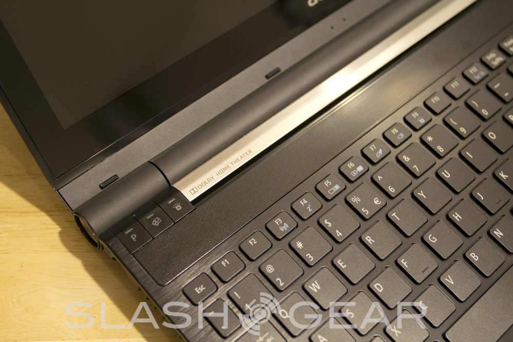 The Aspire Ethos 5951G sports a black metal lid with subtle striations for a finish that's sleek and sophisticated. Opening it up, you'll find the same material used as the bed for the chiclet style keyboard. The black isolated keys are backlit and have a very reassuring resistance about them that provides a solid and comfortable typing experience.