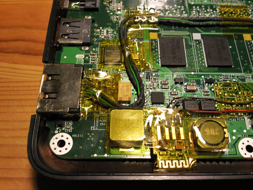 The SATA port was free, because tnkgrl had already switched out her Aspire One's original 8GB SSD with a 60GB hard-drive, hooked up to the PATA interface. Two versions of the 8.9-inch Aspire One motherboard are out there, the SSD version has the ZIF connector and the HDD version has the standard 2.5-inch SATA connector.