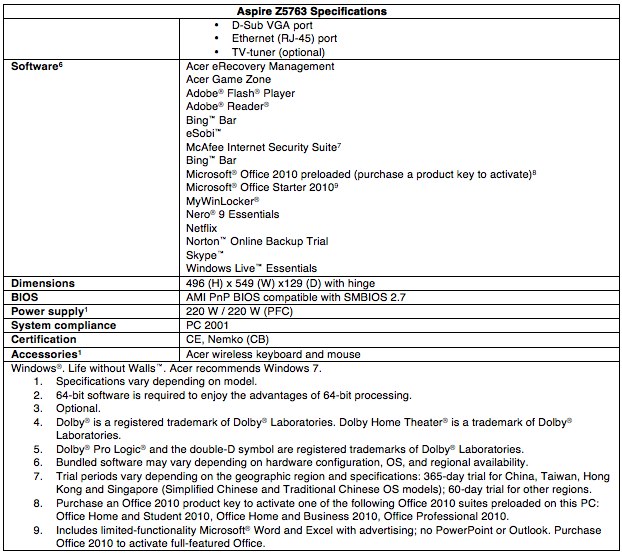 The Acer Aspire Z5763 will be available from mid May with a SRRP of £999 inc Vat.