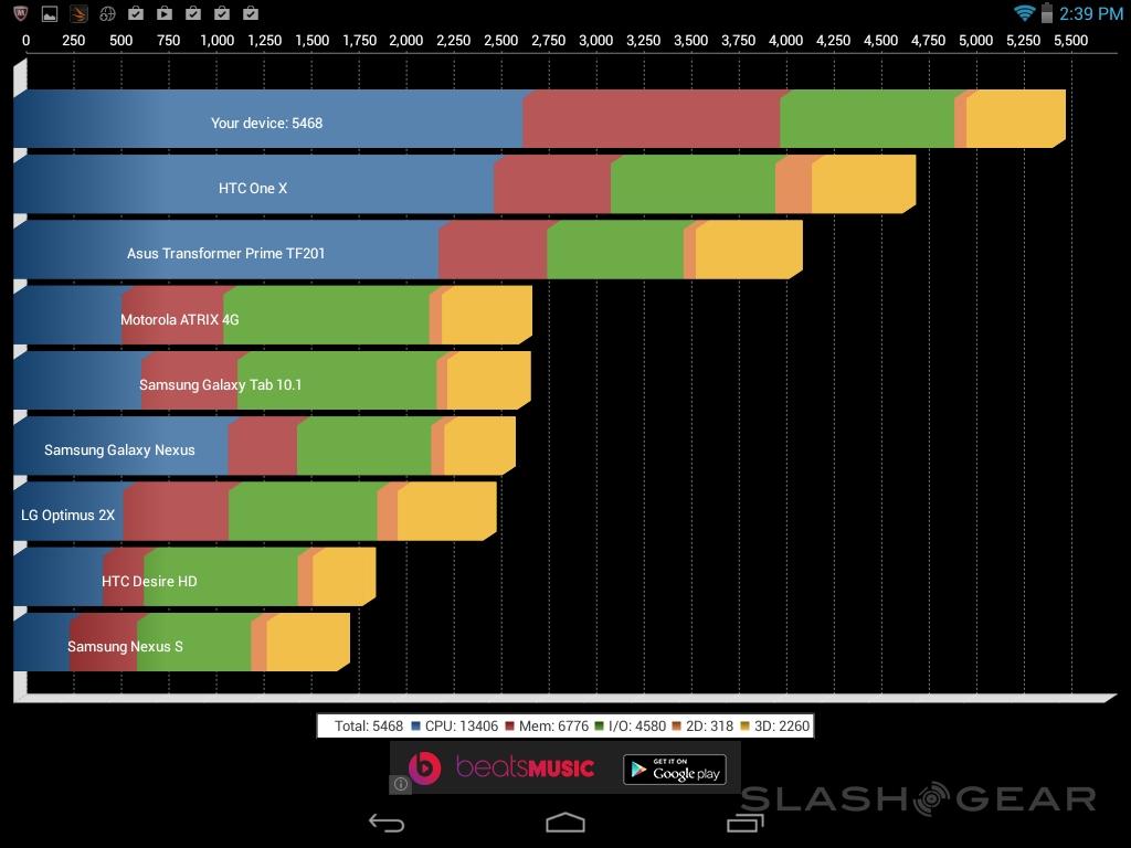 This device works with Android 4.2.2 Jelly Bean and is powered by an Intel Atom dual-core processor (Z2560). We've seen this machine roll with a number of benchmarks in which it did OK, and every app we've seen it run, it's run with great ease.