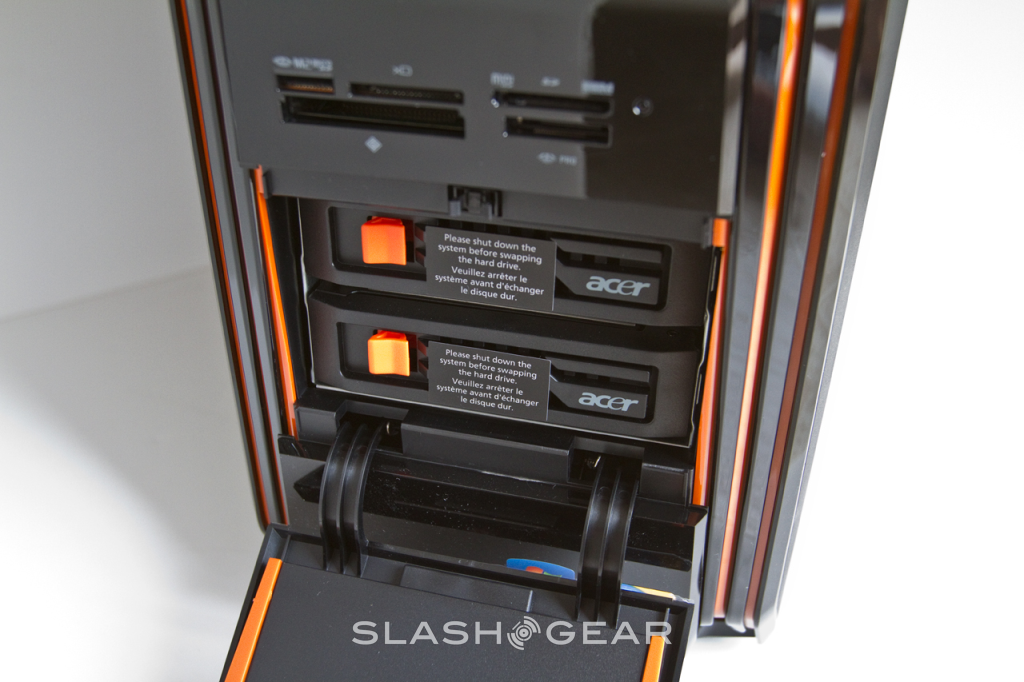 Inside, Acer has paired Intel's 2.93GHz Core i7-870 processor with 8GB of DDR3 1333 memory, a 1.5TB 7,200rpm hard-drive and ATI Radeon HD 5850 video card with 1GB of its own memory. There's also a 16x DVD burner, integrated audio and gigabit ethernet, and two spare PCI-E x1 slots and a single PCI slot. Connectivity includes four USB 2.0 ports on the front, eight on the back, two PS/2, three audio ports and a multi-format memory card reader. No integrated WiFi, but Acer do throw in a USB keyboard and optical mouse, while the OS is Windows 7 Home Premium 64-bit.