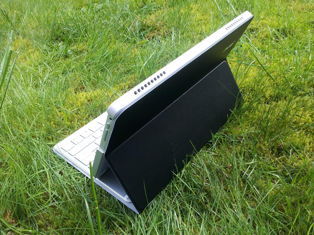 The metal is the same brushed aluminum found on the sides and back of the tablet portion. When closed, a slight groove in the edging helps it stay closed, though there are no magnets or other aids to keep it shut. Overall, it is solid as far as keyboard cases go, and those familiar with this type of product will find it adequate for the needs of a convertible user.