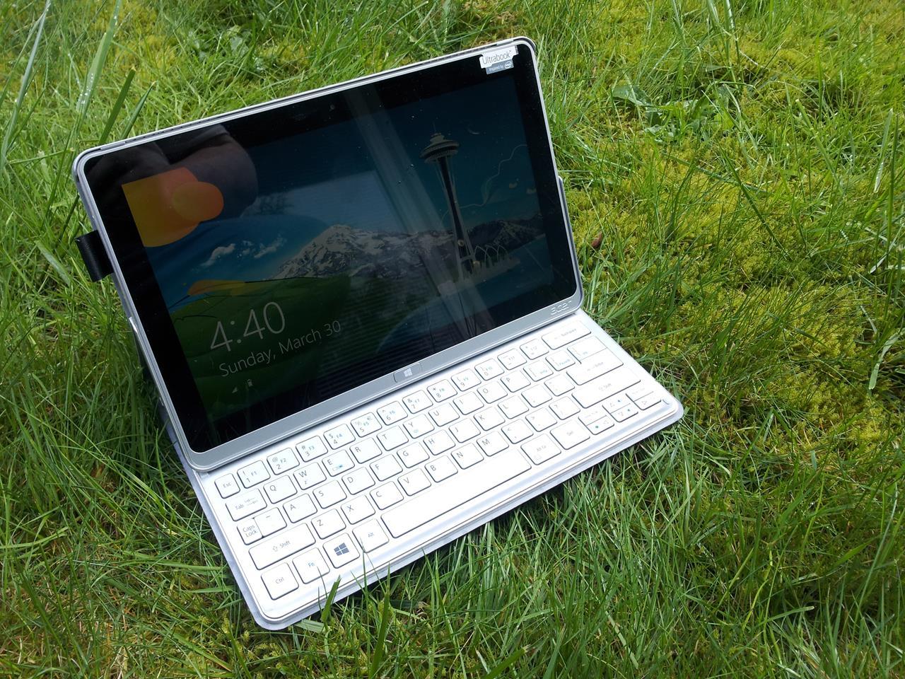 The tablet portion is made of brushed aluminum on the back and along the edges, with smooth black bezels around the display. The tablet is very sleek in design, even if the empty space around the screen is a bit excessive. The display is scratch-resistant, and it is design to withstand reasonable shocks, vibration, temperature extremes, and acoustic noise.