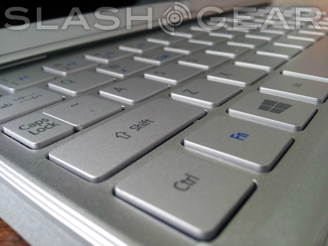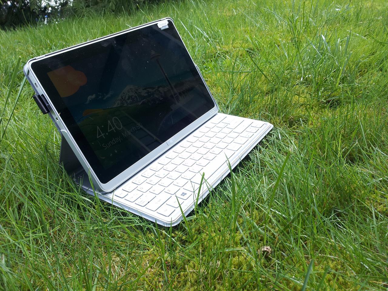 The keyboard is a low-profile chiclet style offering, and while it is certainly something that can be used to type a long work — a research paper, let's say — it doesn't feel terribly comfortable at first. If you use it long enough, you will conform to the key feel, as with any, but it will never feel particularly solid, and might be hard for some to adjust to. In addition, the keyboard is bendable — it will flex easily — and the tablet portion merely sits in the groove, meaning it must be on a flat surface to be stable.