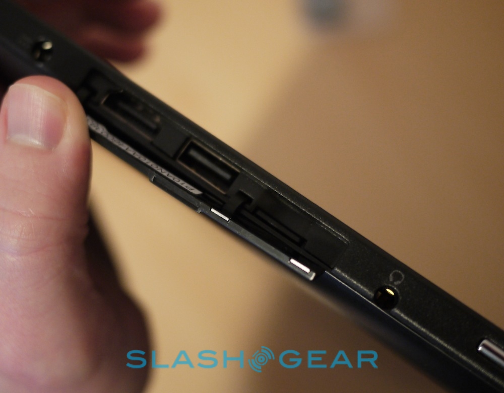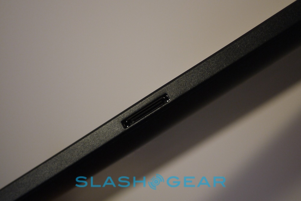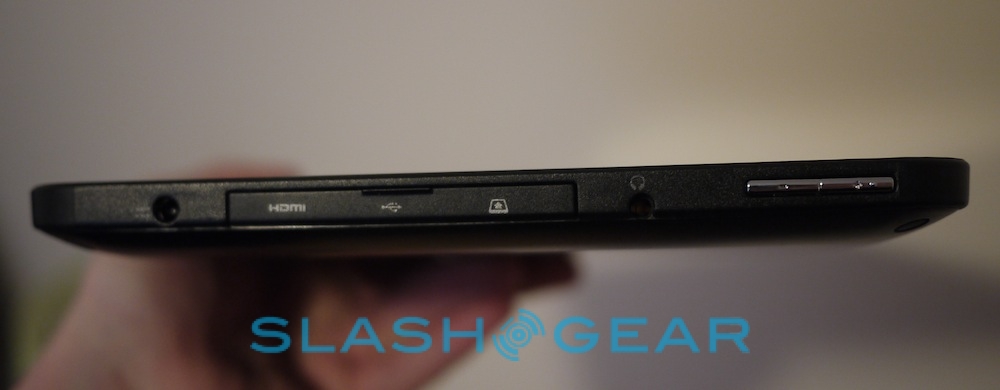 Bar the 1.3-megapixel webcam – which takes unpleasantly fuzzy stills – the Vega's bezel is completely bare, with all of the hardware controls pushed to the edges of the slate. On the top edge there's a microphone, power/lock button, a switch to lock screen orientation and a back button, while running down the right side there's a volume rocker, headphones socket, MicroSD slot (with a 4GB card preloaded), USB port and HDMI port, along with the power connector. A docking connector is on the bottom edge, though so far there are no accessories that take advantage of it, and a pair of stereo speakers are on the back. There's no dedicated home, search or menu keys, as you'd expect to find on an Android device, though a long-press on the back button calls up the context menu, and a long-press on the power button offers home as an option.