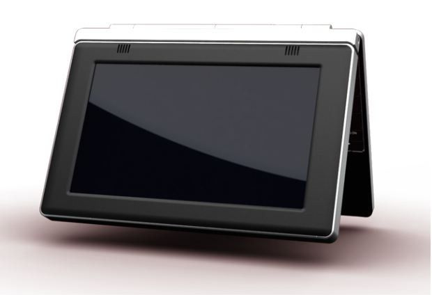 The keyboard, meanwhile, contains a second battery, and together the Touch Book has enough power for up to 15hrs runtime. The whole thing weighs roughly 2lbs when docked, but the screen section on its own is around 1lb and measures roughly 9.5 x 7 x 1 inches.