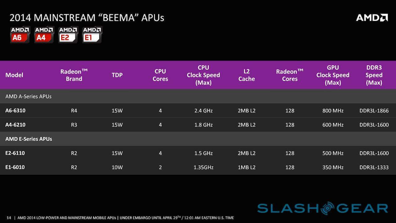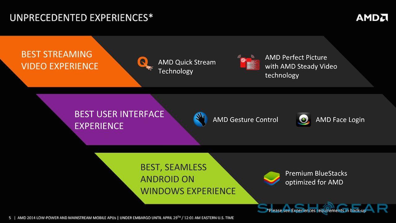 AMD has outed its latest 2014 Mainstream and Low-Power mobile APUs, its combination processor and graphics chipsets for notebooks and ultraportables, and for the first time baking in an ARM chip to handle dedicated security duties. The new SoCs – formerly known as Beema and Mullins – promise not only the usual cut in power consumption as well as a bump in both graphics and processing power, but Android app support on Windows using BlueStacks.