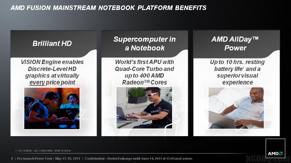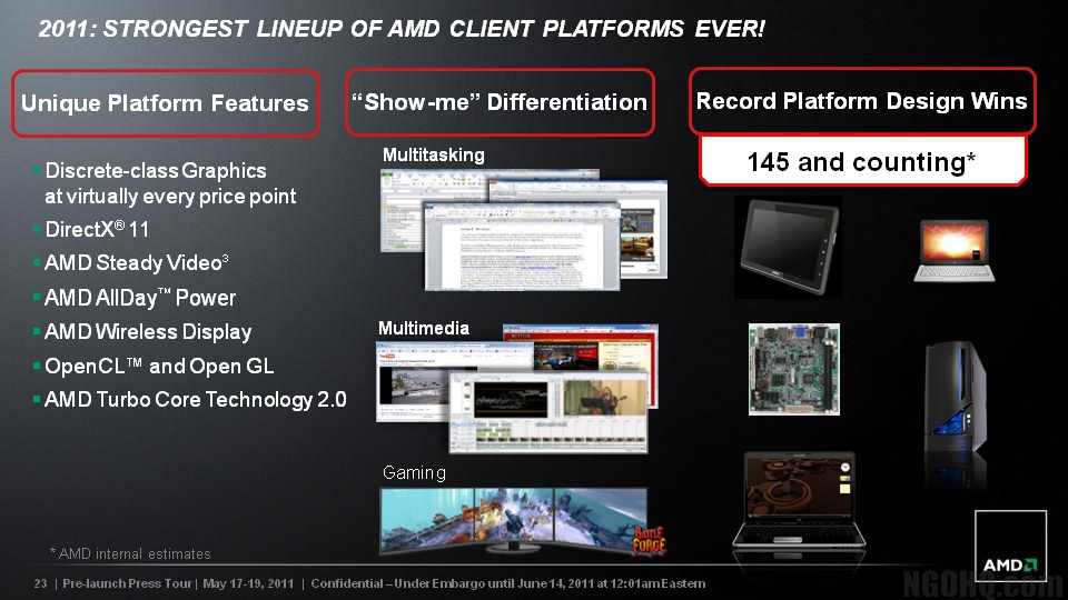The specs suggest that AMD is targeting future Microsoft tablets. But to truly compete with the next-generation Intel Atom Oak Trail chips or ARM-based processors, the Desna will need to have low power consumption for longer battery life in combination with high power and performance.