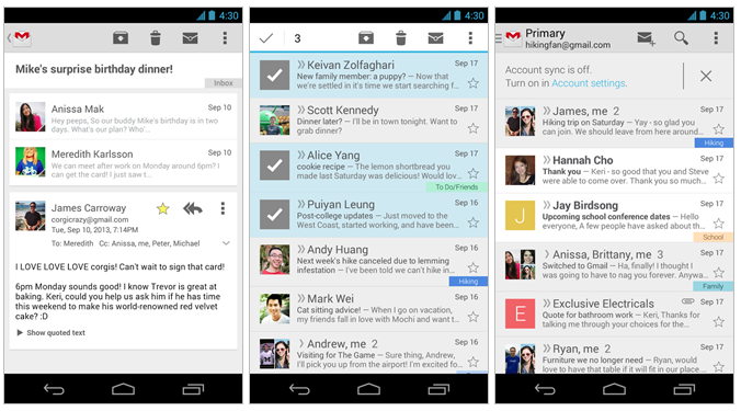 What you'll find with Gmail's update is a cleaner look at Cards. This update appears to replicate the look of Google Now with cards that make the entire Gmail system look easier to use – and in turn feel easier to use as well. This new update will be appearing immediately if not soon for all Android users working with any Android iteration from the past several years – certain improvements will only exist for users of Android's last couple of releases.