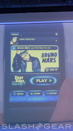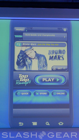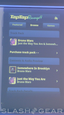 Radio Disney, Jelly Car, and Tap Tap Revenge are apps coming to the tablet version of Android, each of these having seen some action before in either iOS or a desktop OS. Tap Tap Revenge is the game that's very similar to Dance Dance Revolution or Rock Band except where you'd click and pick and dance in one, you tap your fingers here in the other. In-app purchasing in this game is very similar to that which the iOS version already has set up for the game's songs, each of them appearing to cost right around $1. Jelly Car is a game that's based on the physical movement of the tablet it's being run on — honestly we're not sure why it was introduced here. Radio Disney is an interactive panel between a kid and their favorite Disney-based radio station, giving them options like Hannah Montana and the Beebs. Disney Mobile is releasing all three of these (hopefully this means that Disney Mobile is back in the USA and will release their fabulous Galapagos-based phone here – fancy!