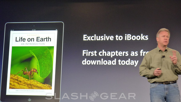 Books at every level of education have been revealed in the iBookstore this week, Textbooks with full interactive abilities and workings for the iPad specifically. What Apple is attempting to do here is to take the "dark ages" of education and turn them into a full future-headed world where interactive elements are the norm and you only need one device in the classroom: the iPad. There's even exclusive books that are made to bring in the average student such as E.O. Wilson's Life on Earth, of which the first two chapters will be made free at first.
