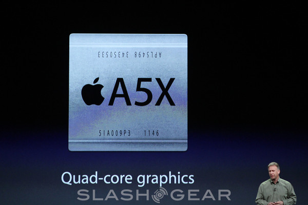 Tim Cook immediately went into talking about the NVIDIA Tegra 3 quad-core processor in all those Android tablets when talking about their own new A5X. After confirming the processor under the hood he revealed that the X stands for quad-core graphics. Graphics that are capable of around 4x the performance of the Tegra 3.