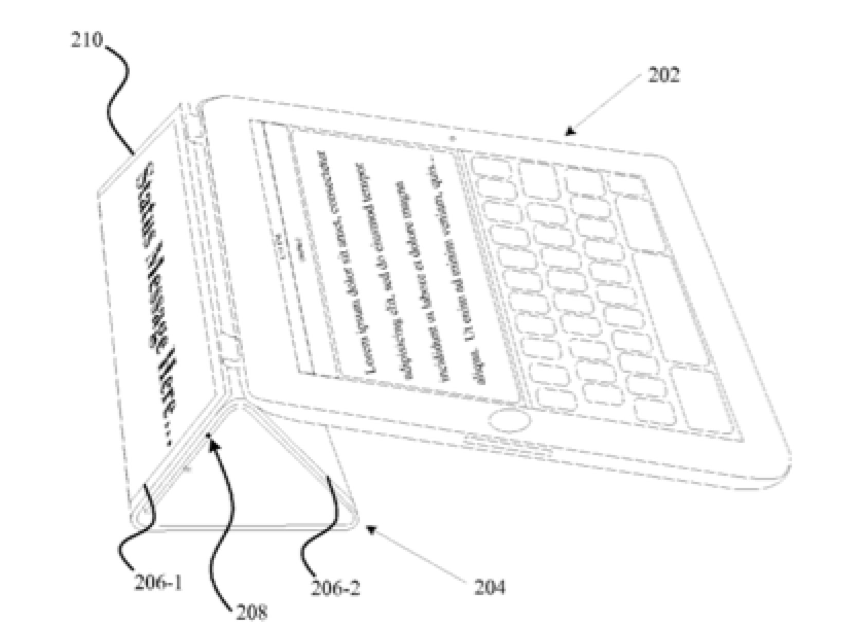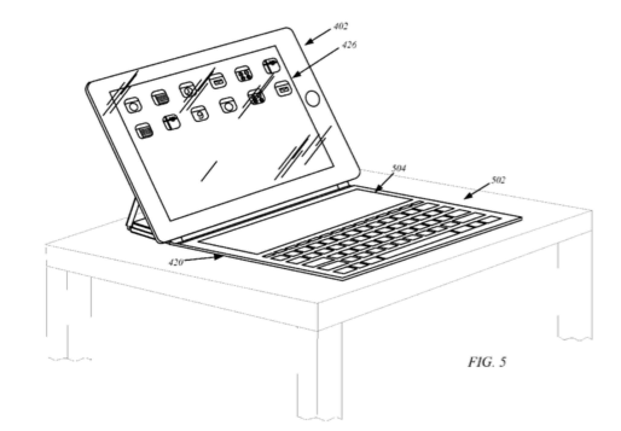 That could mean the Smart Cover could be turned into a keyboard or even, as Apple's diagram below suggests, a combo keyboard and touchscreen. We've seen similar from Microsoft with the Surface keyboard cover, but Apple's system would go on stage further by implementing a flexible display, too.