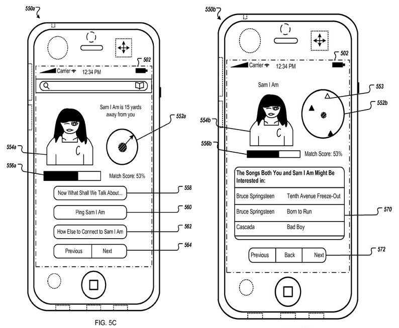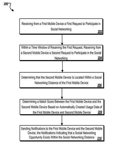 According to the application, the system wouldn't require that users set up a profile and then search through those profiles of other people. Instead, a "Buddy Finder" system would automatically flag the device up as open to being discovered by nearby people with similar interests, either using point-to-point connections like Bluetooth or NFC, or server-based systems relying on an iPhone reporting in with its GPS location.