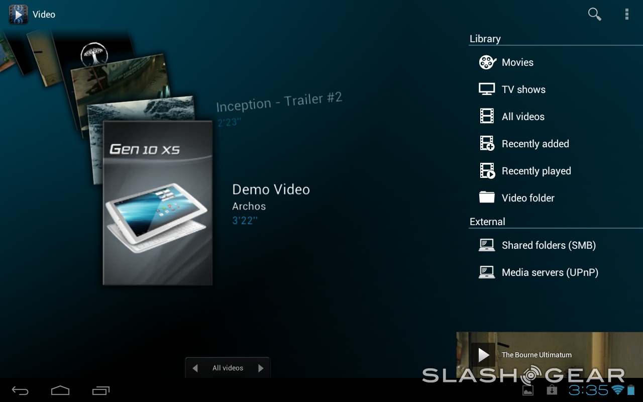 Android 4.0 Ice Cream Sandwich is in full effect with multi-tasking via your recent apps button on the screen in the dock and we've been told that Archos will be updating this device to Android 4.1 Jelly Bean by the end of the year. Archos has also added a collection of Media Center apps so you can see codec and format information on your movies and photos. Seeing your codec and format information also allows you to search items like title, series, actor, subtitle, and other information at will – just so long as your media has that information in the first place.