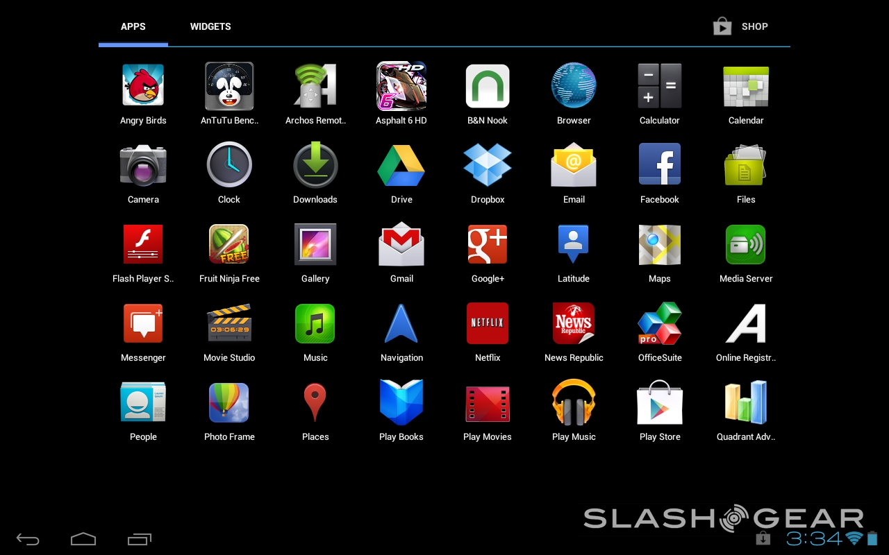 This tablet comes with a nearly vanilla version of Android 4.0 Ice Cream Sandwich. It's got all your Google favorites like Google Play for digital media purchases, Gmail, Google+, and access to Google Drive right out of the box. Of course all of these apps (minus the Google Play store) are available to download by any Android device just so long as you've got the Google Play store and support for said store on your hardware.