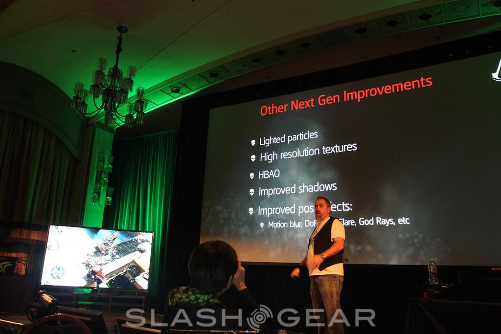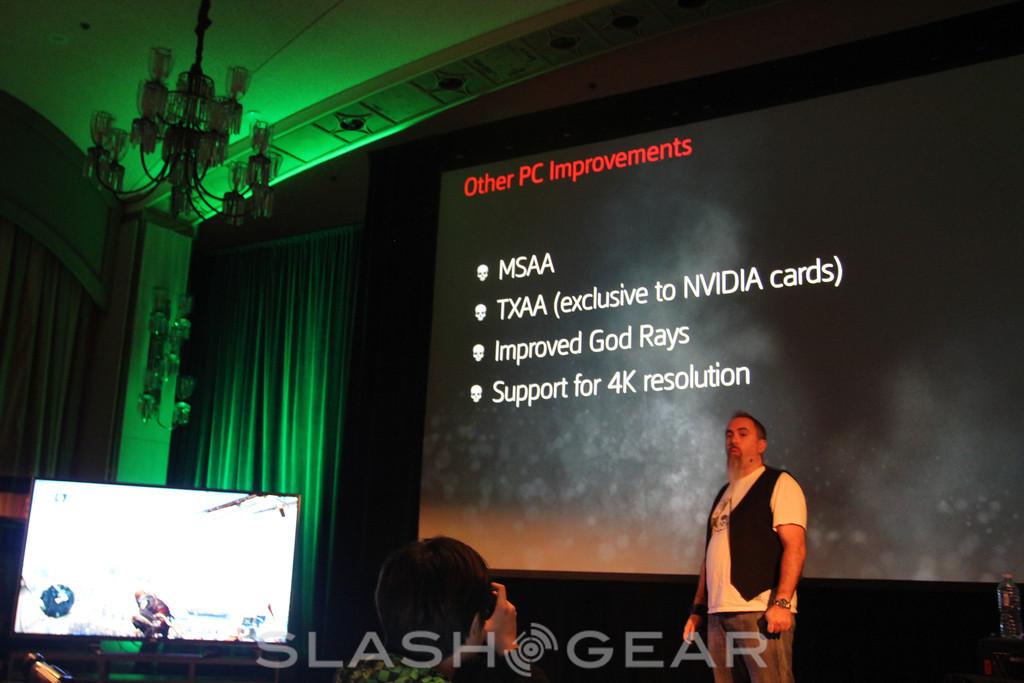 Ubisoft's Sylvain Trotter also made clear their work with NVIDIA on lighted particles, HBAO, and a cover-all push for high resolution textures. You'll see improvements in motion blur (over non-PC versions of the game, that is), as well as lens flares, shadows, and of course support for 4K resolution displays.