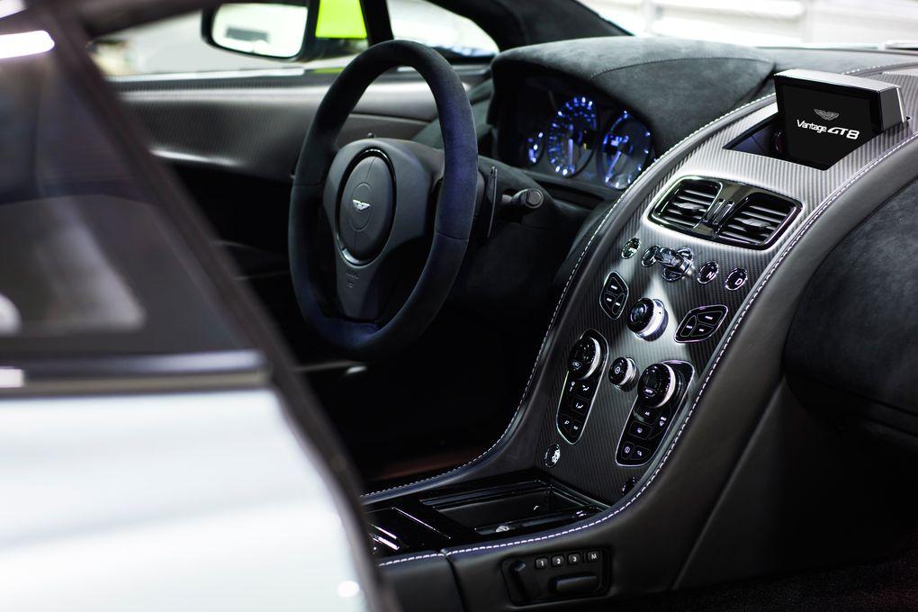 There's also racing-inspired center-lock magnesium rims, paired with Michelin Pilot Sport Cup 2 tires. The engine, however, has not been tuned down in any way. The GT8 features the Vantage's 4.8-liter V8 engine tuned to put out 440 horsepower. The lucky buyers will get the option of choosing to combine that with a six-speed manual or seven-speed paddle-shift transmission.