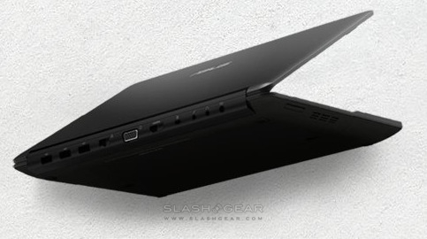 All of the ports are on the back panel of the notebook – apparently something ASUS only managed by "uniquely" rearranging the interior layout. By squinting at the relatively low resolution image we can make out audio in/out, VGA, three USB and ethernet, as well as what could be an HDMI port.