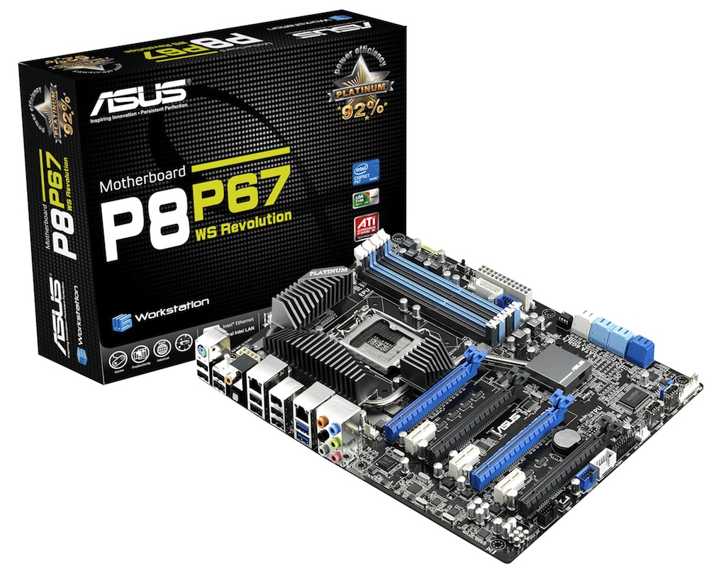 The new ASUS P8P67 WS Revolution enables extreme graphics performance with multiple GPU arrangements that result in the most advanced visual performance of any P67-based motherboard. It delivers ASUS' 24X24 promise, which means it's a workstation motherboard designed for 24/7 operation with guaranteed complete reliability in even the most heavy-load professional applications. ASUS also guarantees this model's availability for a minimum of 24 months, hence "24X24". The P8P67 WS Revolution provides platinum-level 92% power efficiency, leading to perfect stability and 15% more cost-effective operation compared to other P67 boards. Hardware-accelerated Intel® LAN helps lower CPU utilization to optimize total performance.