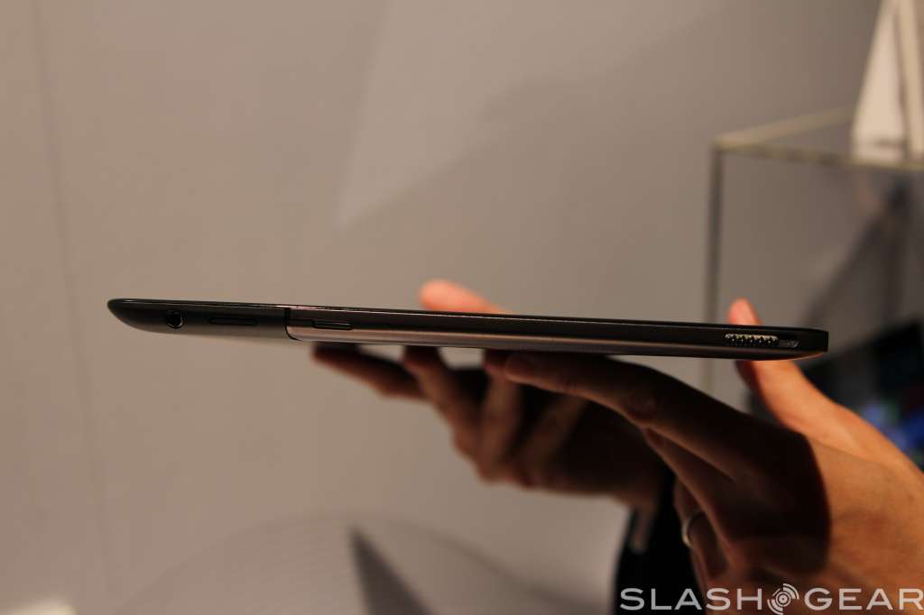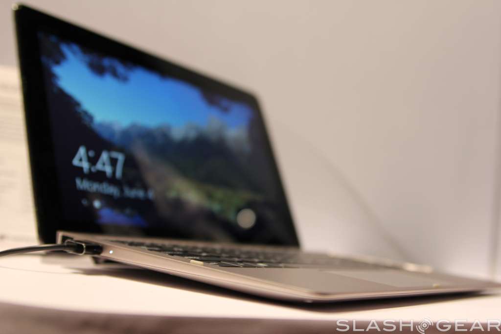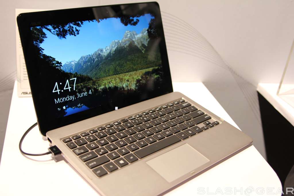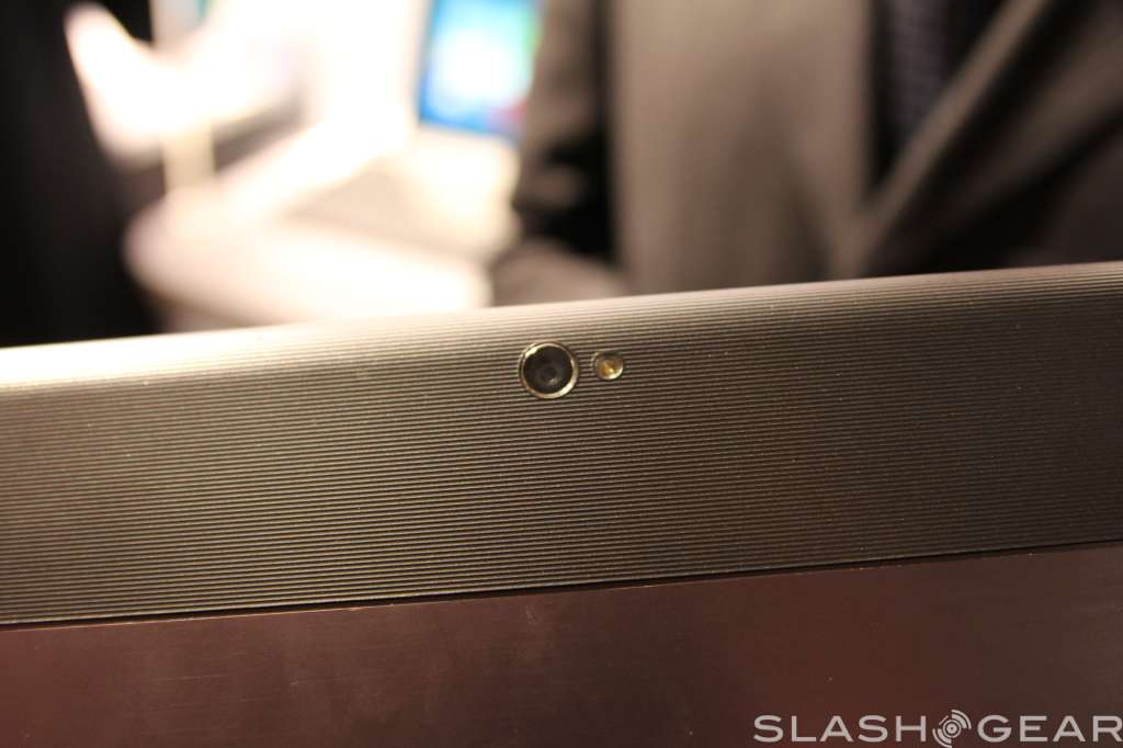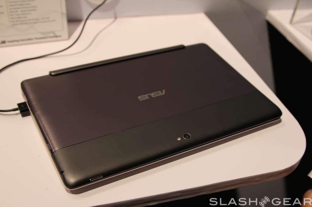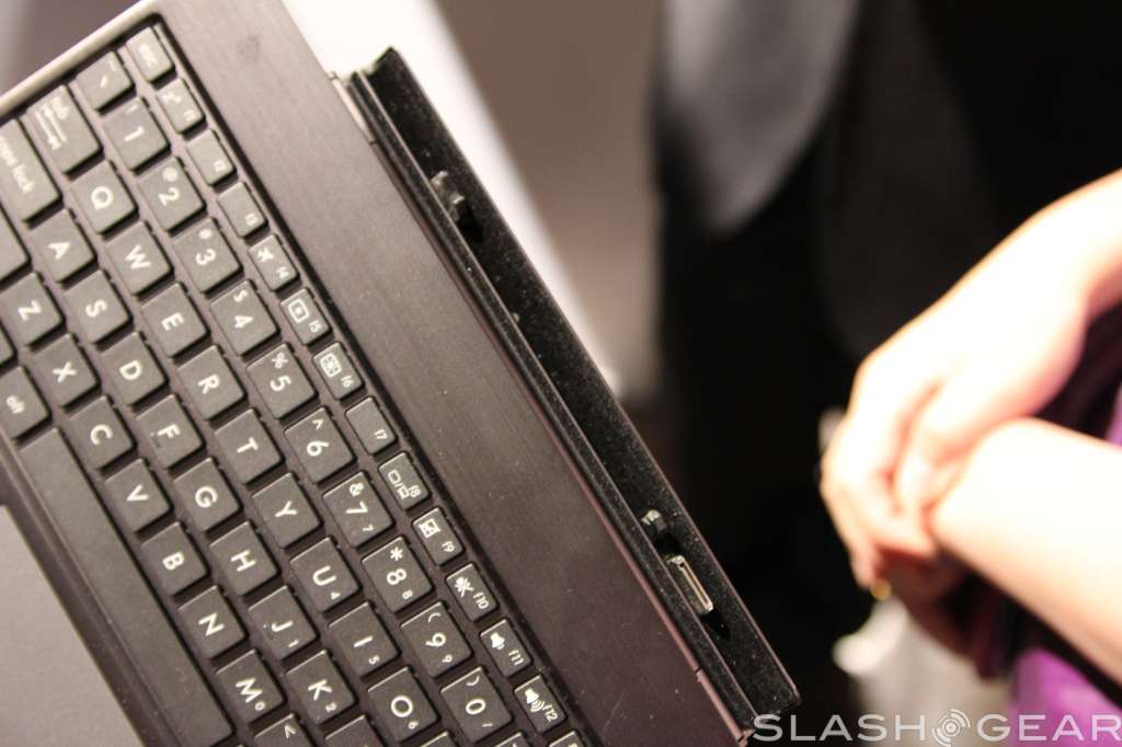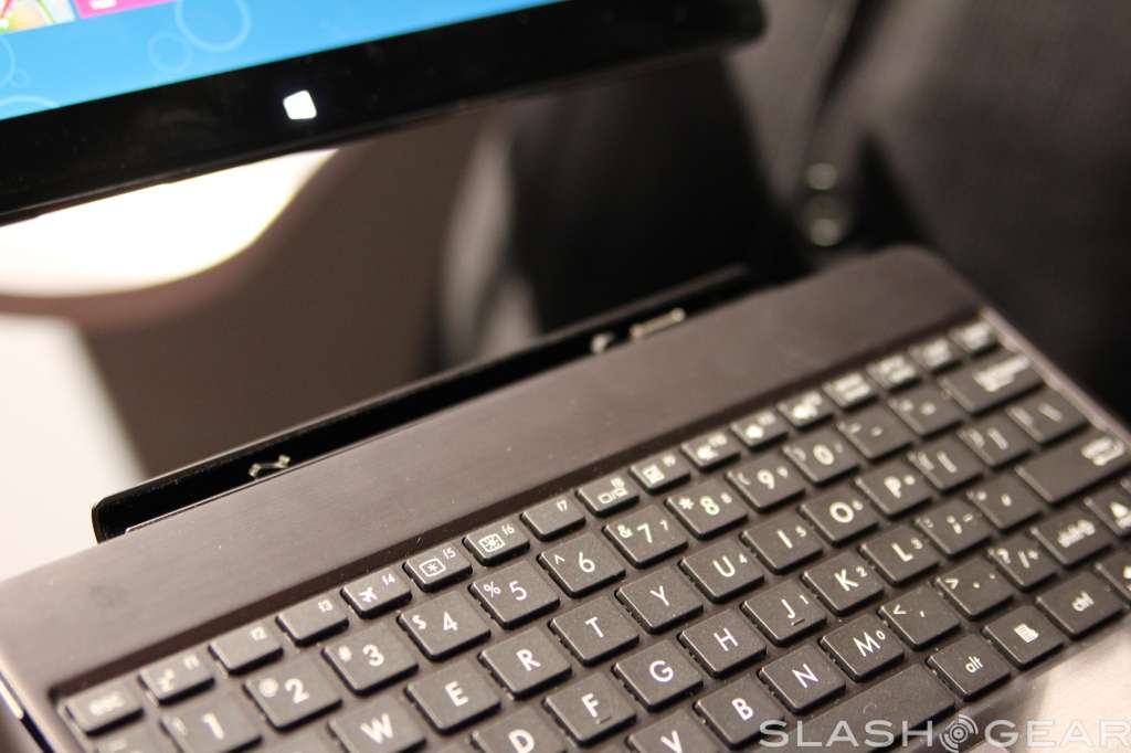 The screen has support for ten-point multi touch, has a two megapixel camera up top for video calls, and radios onboard include WiFi b/g/n with Bluetooth 4.0 support. Like the Transformer Prime, the screen can detach from the keyboard base, and popping it back in will give you a full keyboard to work with plus some extra battery life.