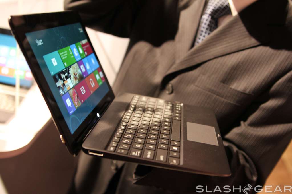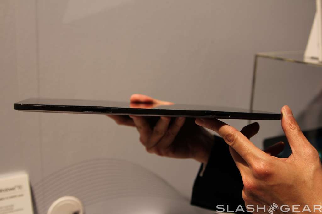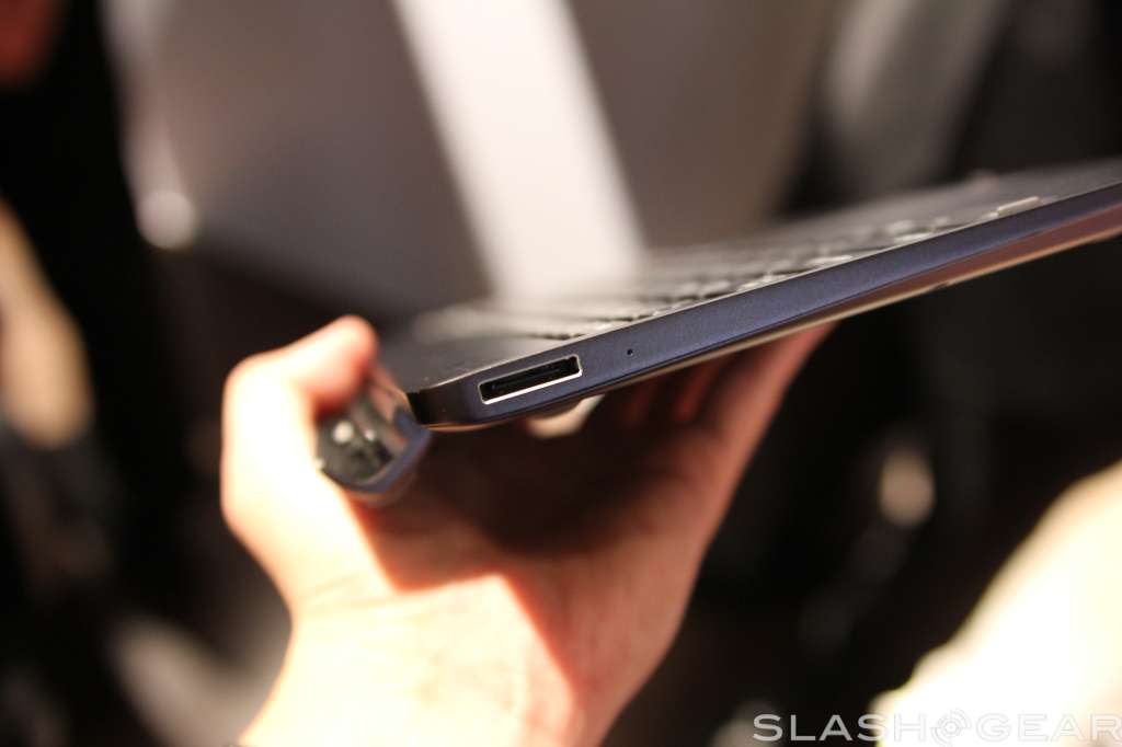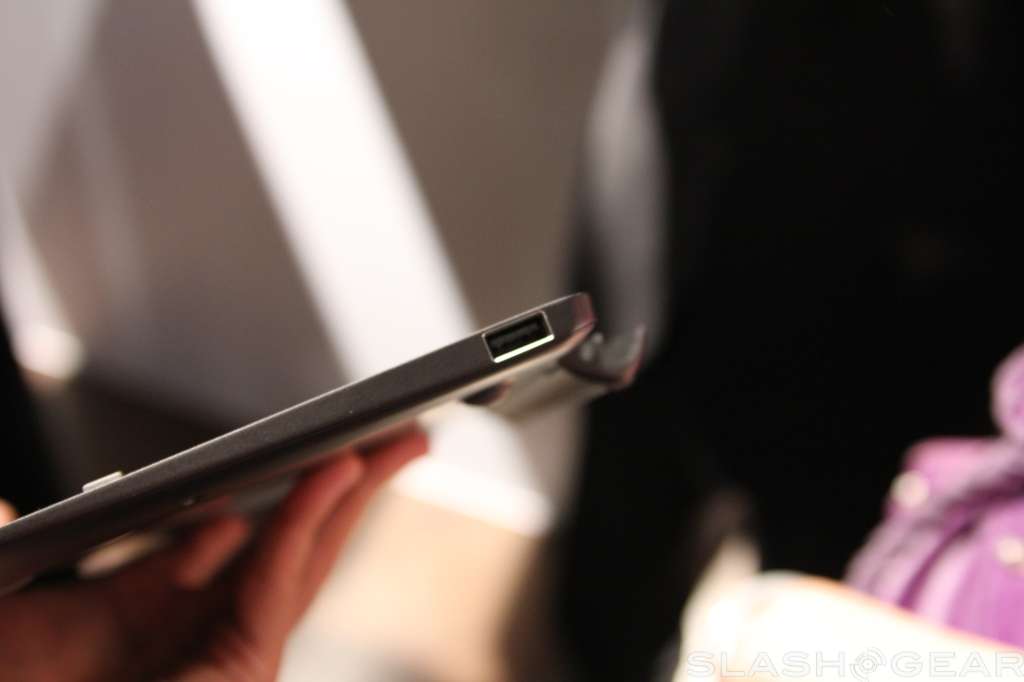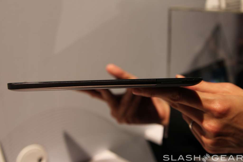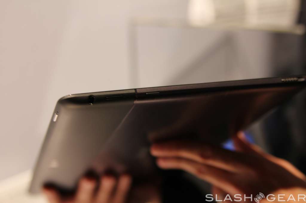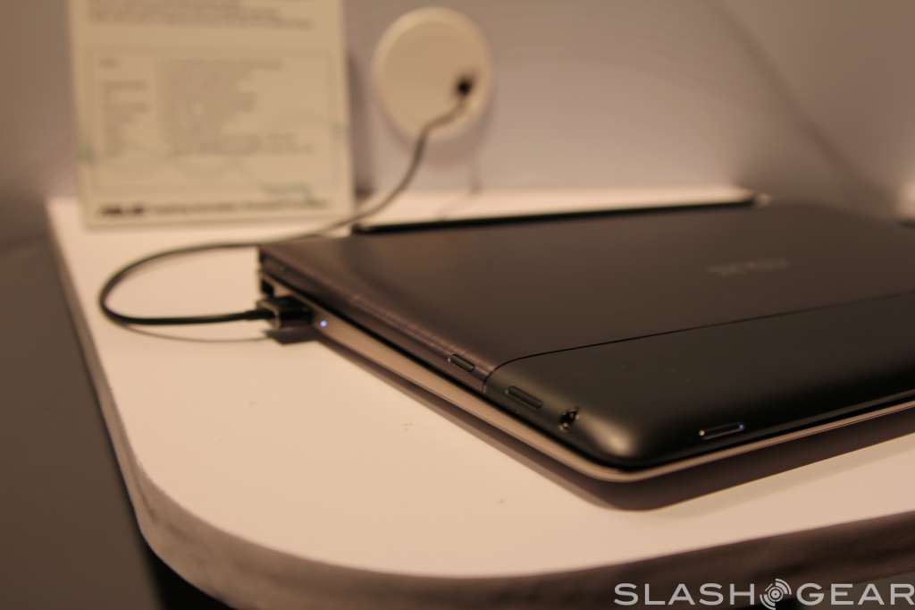 The screen has support for ten-point multi touch, has a two megapixel camera up top for video calls, and radios onboard include WiFi b/g/n with Bluetooth 4.0 support. Like the Transformer Prime, the screen can detach from the keyboard base, and popping it back in will give you a full keyboard to work with plus some extra battery life.