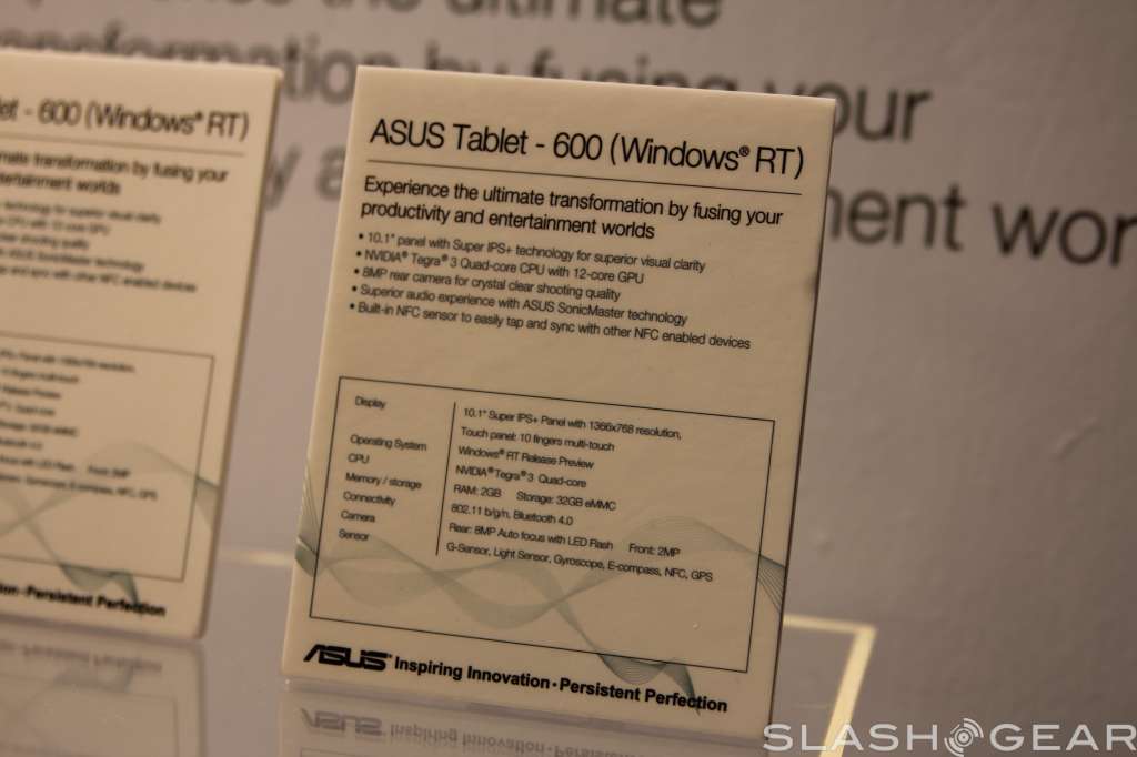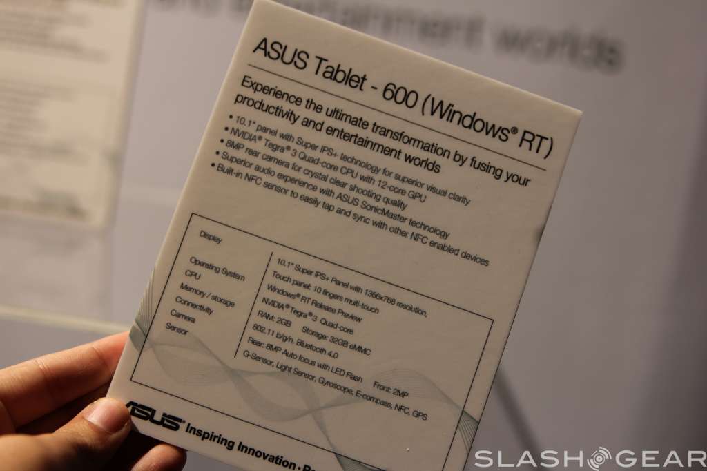 Take the ASUS Transformer Prime, boost the specs a little, and add Windows RT. What are you left with? The ASUS Tablet 600, of course. In additio,n ASUS has also unveiled the Tablet 810, a similar concept but running Intel's new Atom processor and full blown Windows 8. The Tablet 600 will come with a quad-core Tegra 3 processor, a 10.1-inch 1366x768 Super IPS+ display, 2GB of RAM, 32GB of eMMC storage, and an eight megapixel camera.
