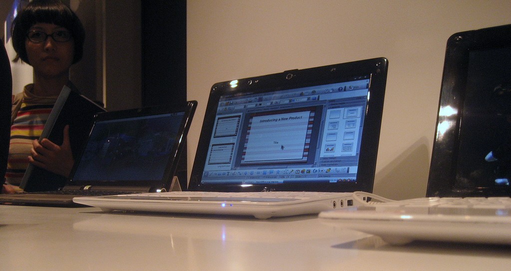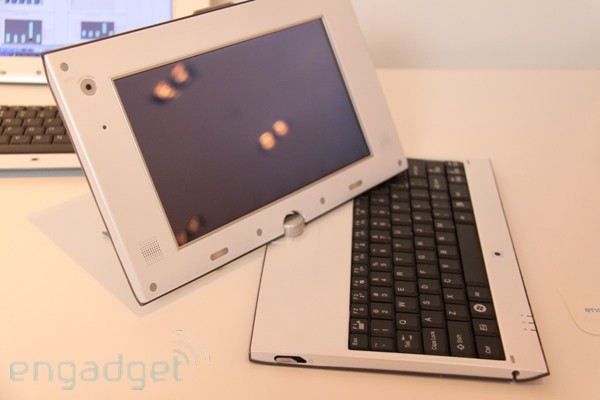 They may look like the ASUS Eee PC 1008HA, but these slender netbooks are actually the first demo units of Qualcomm's Snapdragon-based Eee PCs. Based on Qualcomm's 1GHz super-chip, the ASUS models – actually thinner than the 1008HA – were joined by machines from Wistron and Inventec.More Qualcomm Smartbooks after the cut
