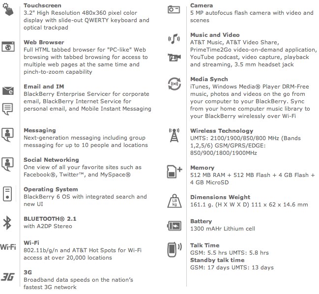 RIM has also thrown in "Media Synch" which apparently can stream your home audio content to your BlackBerry Torch via a WiFi connection, as long as it's DRM-free. The Torch 9800 will arrive on AT&T on August 12th, priced at $199 with a new, two-year agreement; AT&T are taking email sign-ups for those who want more details when they're ready. Considering the first OS 6 device in the US will be an AT&T exclusive, if you want the new platform then it looks like you're headed to AT&T; no word on when Verizon might get a version of the 9800 or their own OS 6 handset.