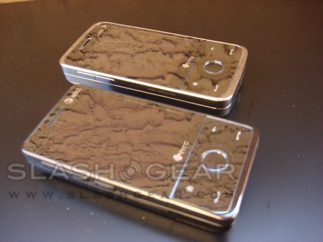 Physically, the Fuze is much different than it appears at first glance. The back of the Fuze is the same as the Touch Diamond, with a diamond-like shape. The Fuze is also a lot more squared off than the Touch Pro, which is rounded. The sides and accents of the Touch Pro are shiny chrome, while the Fuze is all black. The phones are virtually the exact same size, width wise, but when it comes to length, the Touch Pro is two or three millimeters longer. Due to the body design of the Fuze, the stylus is squared at the end, the Touch Pro's stylus is rounded to fit the contour of the body.