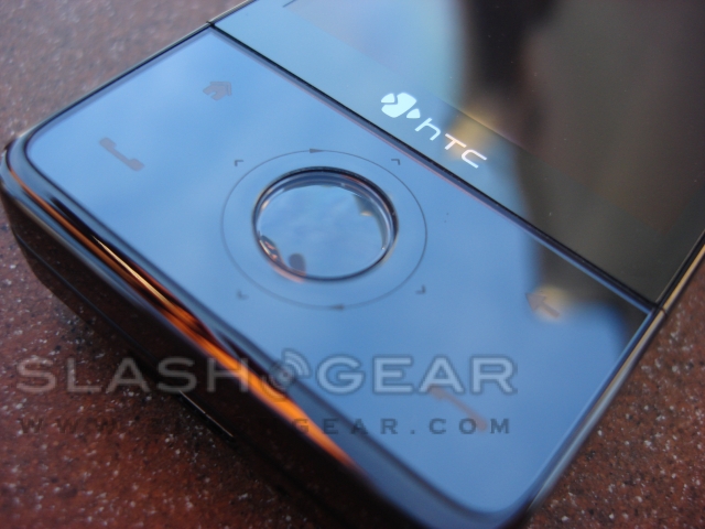 The speaker on the Touch Pro can be located on the top of the device, whereas the speaker on the Fuze is located next to the camera, on the top-left tip of the triangle. The keyboards on the two handsets are built the same, just with different functions. The selection button on the face of the Touch Pro is contoured to better fit your thumb than on the Fuze, whose button is just not as recessed. Another slight difference is the circular directional pattern around the selection button on the Fuze. The last physical difference that can be seen is the addition of the Push-to-Talk (PTT) button just below the volume keys on the left.